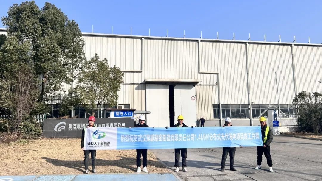 新春佳節前夕,德行(xíng)天下(xià)新能(néng)源投資承建的(de)武漢聚鵬精密制(zhì)造₽有(yǒu)限責任公司1.4MW分(fēn)布式光(guāng)伏發電(diàn)項目全容量并網發電(diàn),實現(xiàn)了(le)2025年(nián)首戰告捷“開(kāi)門(mén)紅(hóng)”!